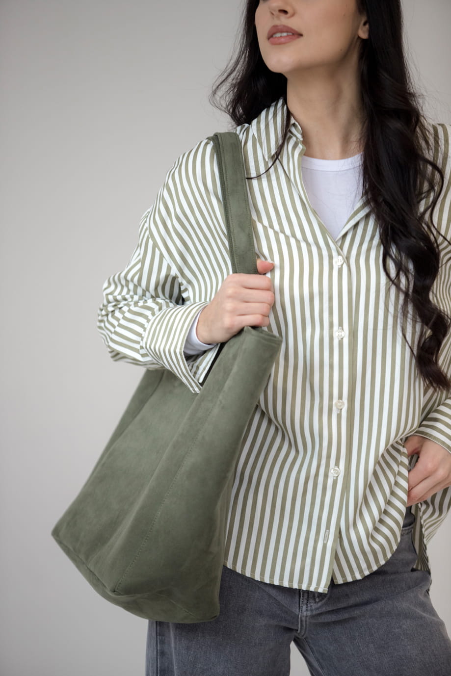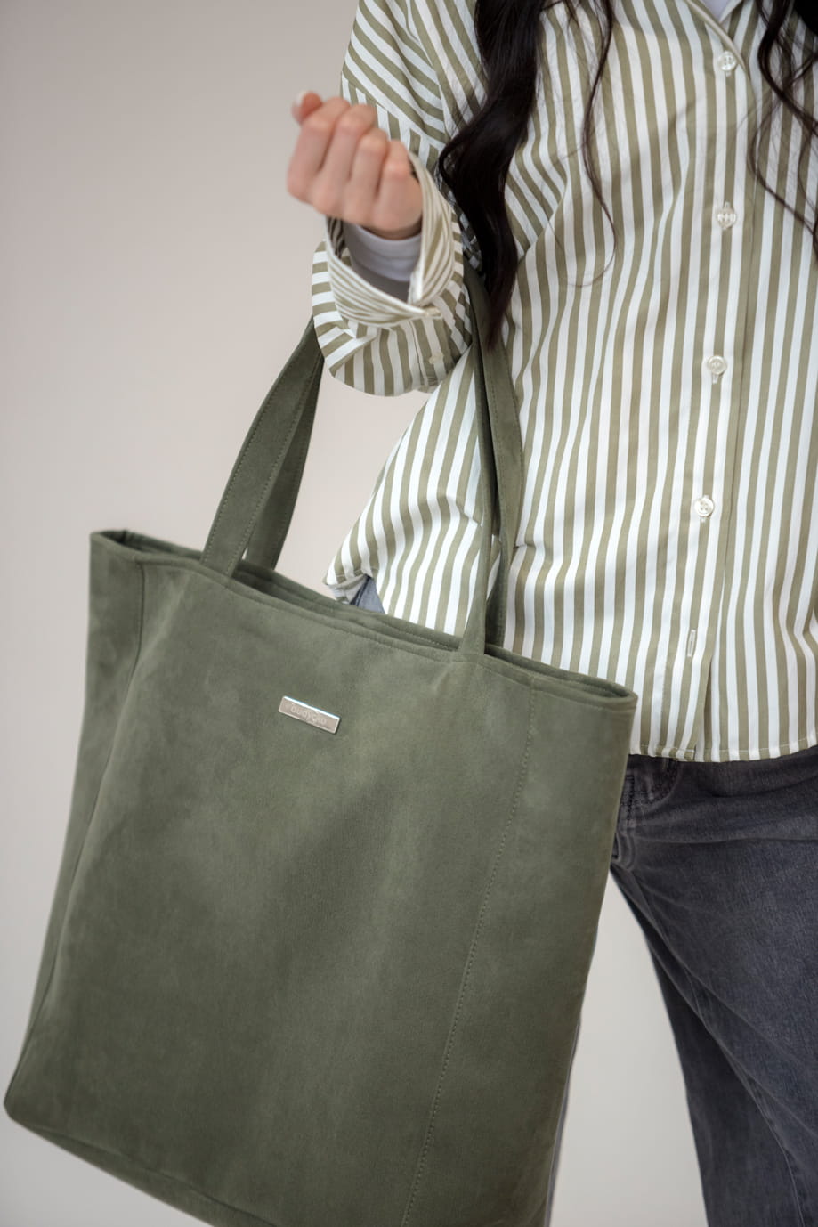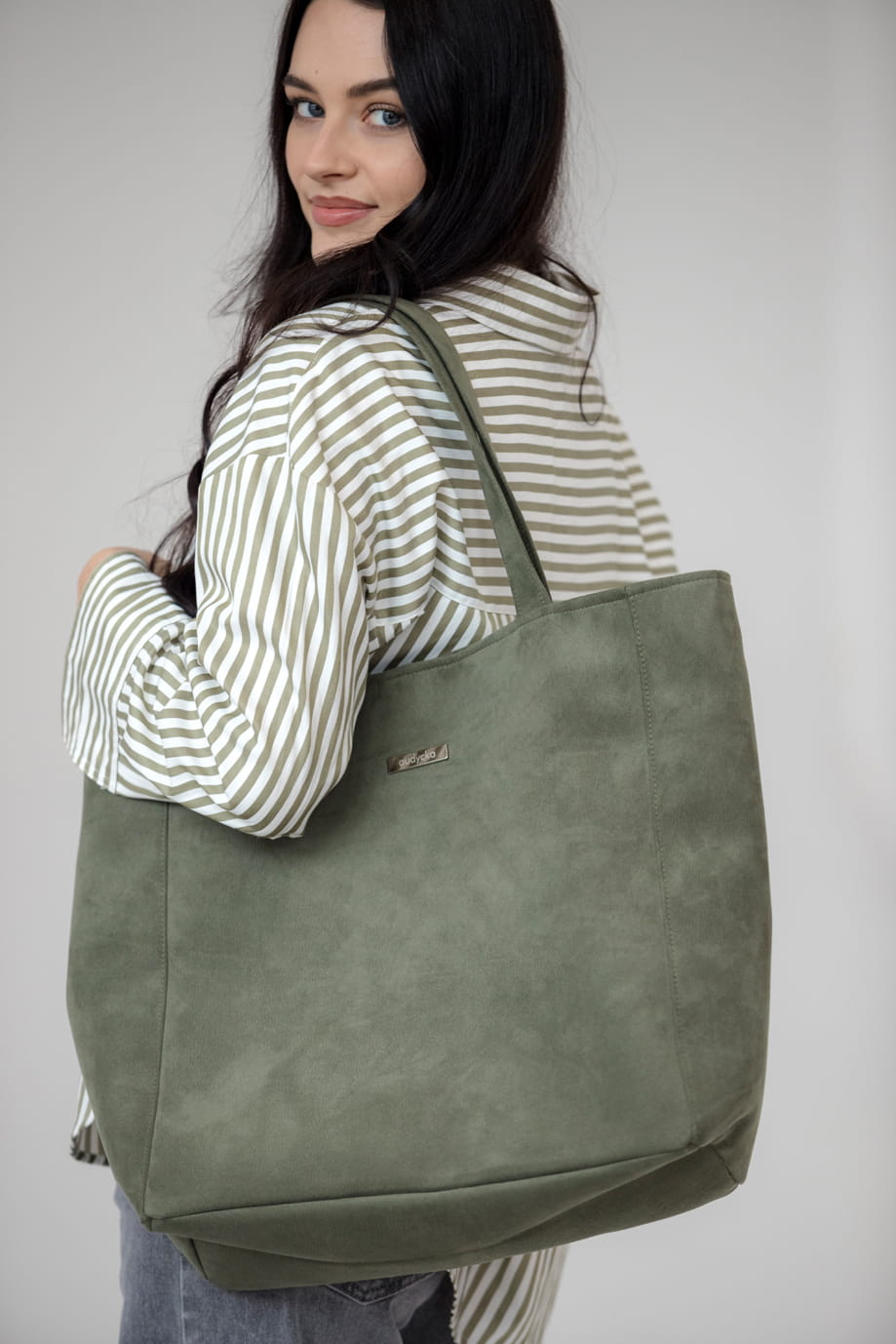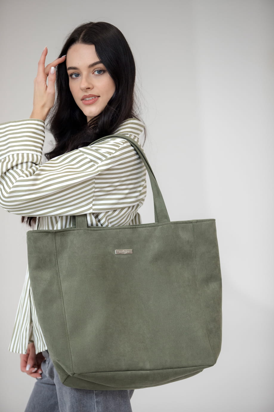 Shoper, eine umweltfreundliche Nubuk-Tasche, die auf der Schulter getragen wird. Eine einzigartige Handtasche aus schönem Stoff eignet sich perfekt als Arbeitstasche oder Uni-Tasche. Du kannst ein Tablet, Dokumente, Bücher oder Notizen darin unterbringen, und in der Außentasche kannst du kleinere Kleinigkeiten verstauen. Es passt perfekt zu jedem lässigen Styling. Der starke Stoff ist reibungs- und feuchtigkeitsbeständig. Ausgezeichnete Tasche für aktive Frauen.