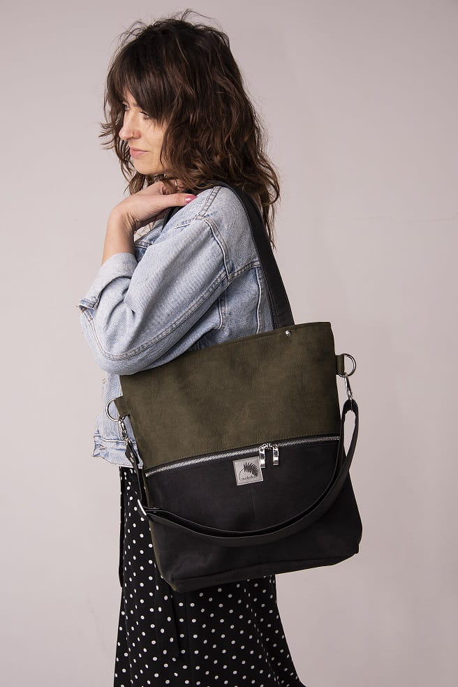 Rechteckige Öko-Wildledertasche zum Tragen auf der Schulter oder diagonal wie eine Umhängetasche. Der verstellbare Riemen ermöglicht die entsprechende Länge anzupassen. Die einzigartige Tasche aus wunderschönem Stoff eignet sich hervorragend als eine Arbeits- oder Collegetasche. Sie können ein Tablet, Dokumente, Bücher oder Notizen und in den beiden Außentaschen weniger wertvolle Kleinigkeiten verstecken. Ergänzt ideal jede Casual-Stilisierung. Starker Stoff ist gegen Reibung und Feuchtigkeit beständig. Perfekte Tasche für aktive Frauen.