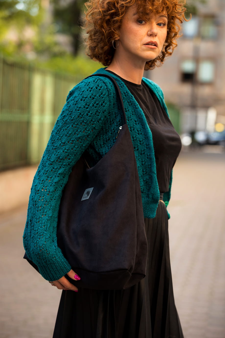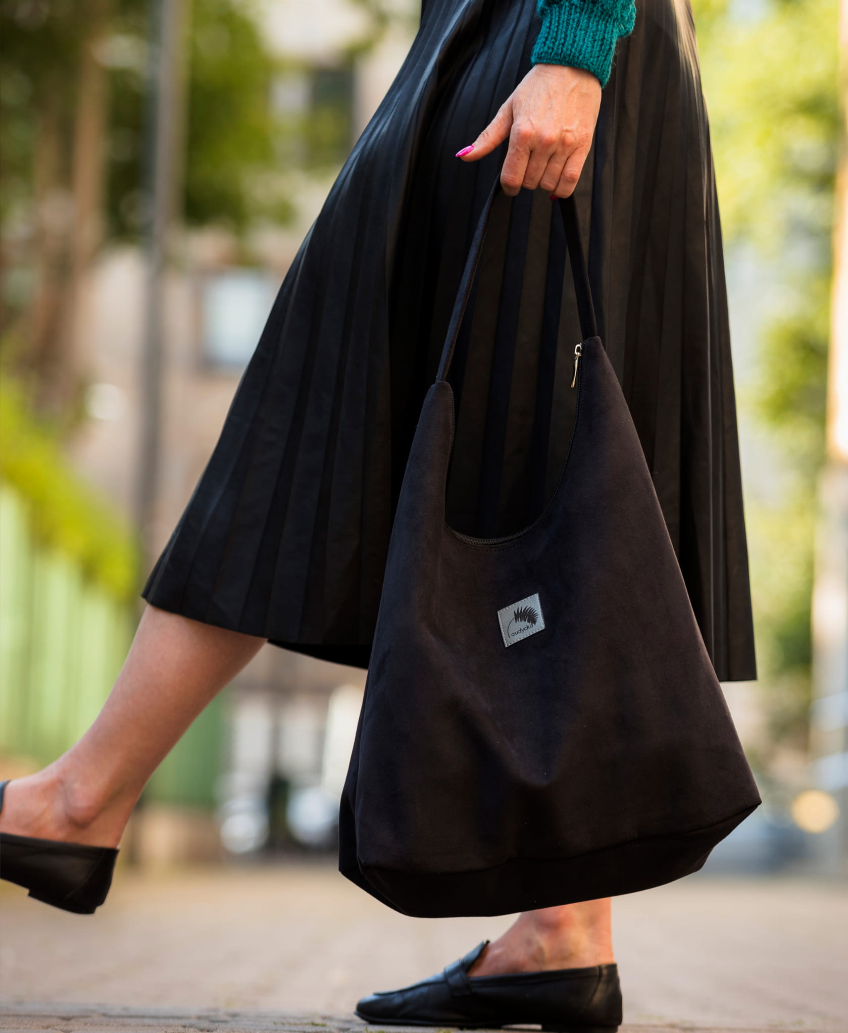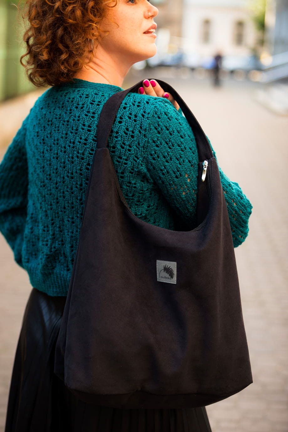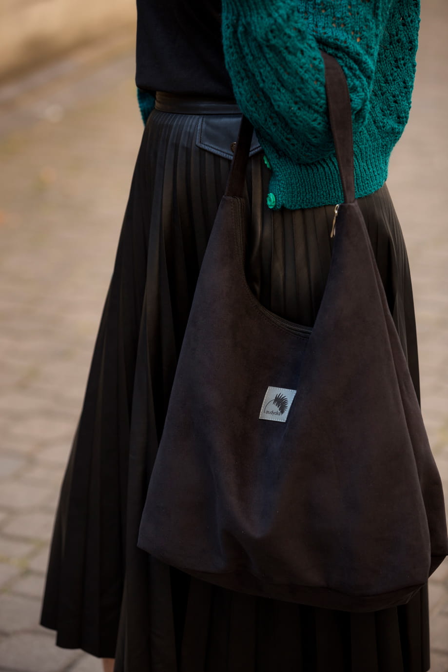 Schwarze Hobo Tasche aus Polster-Nubuk