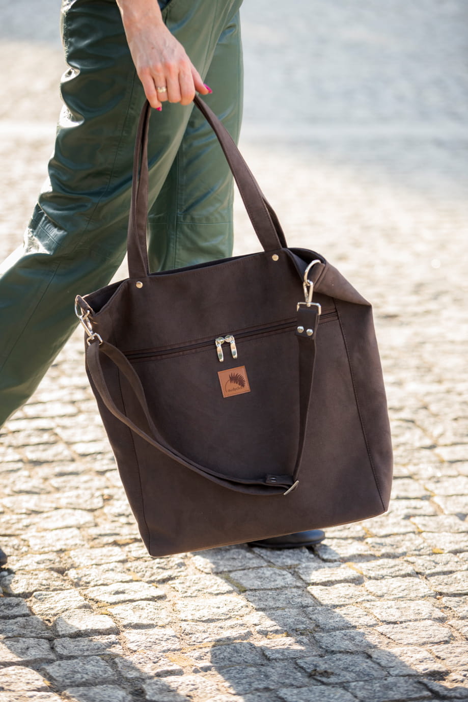 Shopper, eine umweltfreundliche Nubuk-Tasche, die auf der Schulter oder diagonal getragen wird. Eine einzigartige Handtasche aus schönem Stoff eignet sich perfekt als Arbeitstasche oder Uni-Tasche. Du kannst ein Tablet, Dokumente, Bücher oder Notizen darin unterbringen, und in den beiden Außentaschen kannst du kleinere Kleinigkeiten verstauen. Es passt perfekt zu jedem lässigen Styling. Der starke Stoff ist reibungs- und feuchtigkeitsbeständig. Ausgezeichnete Tasche für aktive Frauen.