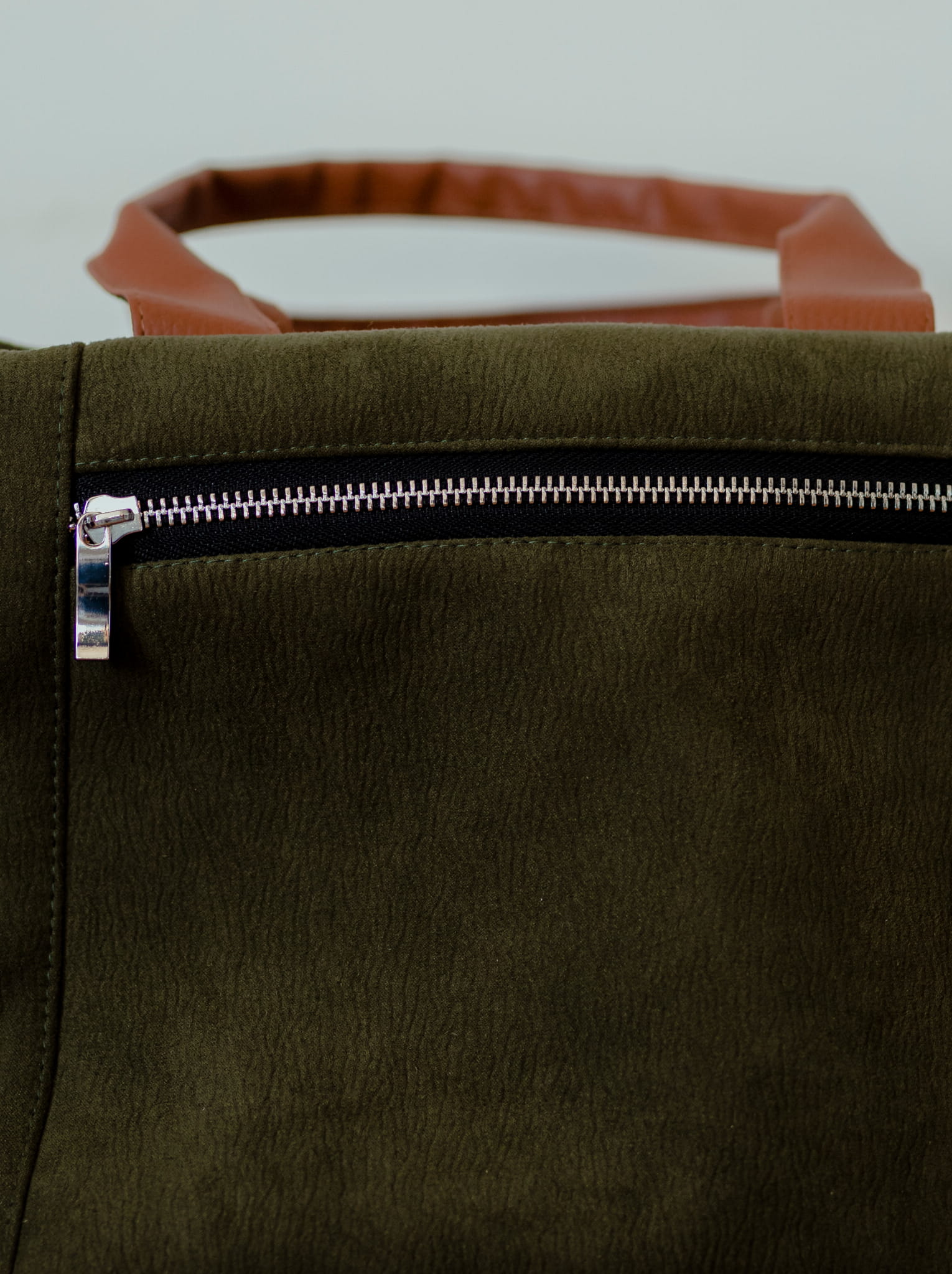 Außenmaterial: dickes, wasserabweisendes, italienisches Öko-Nubuk vom Typ Bukara fantastischer Qualität. Leicht zu reinigen, abriebfest. Die Griffe und der lange Riemen sind aus Öko-Leder gefertigt.